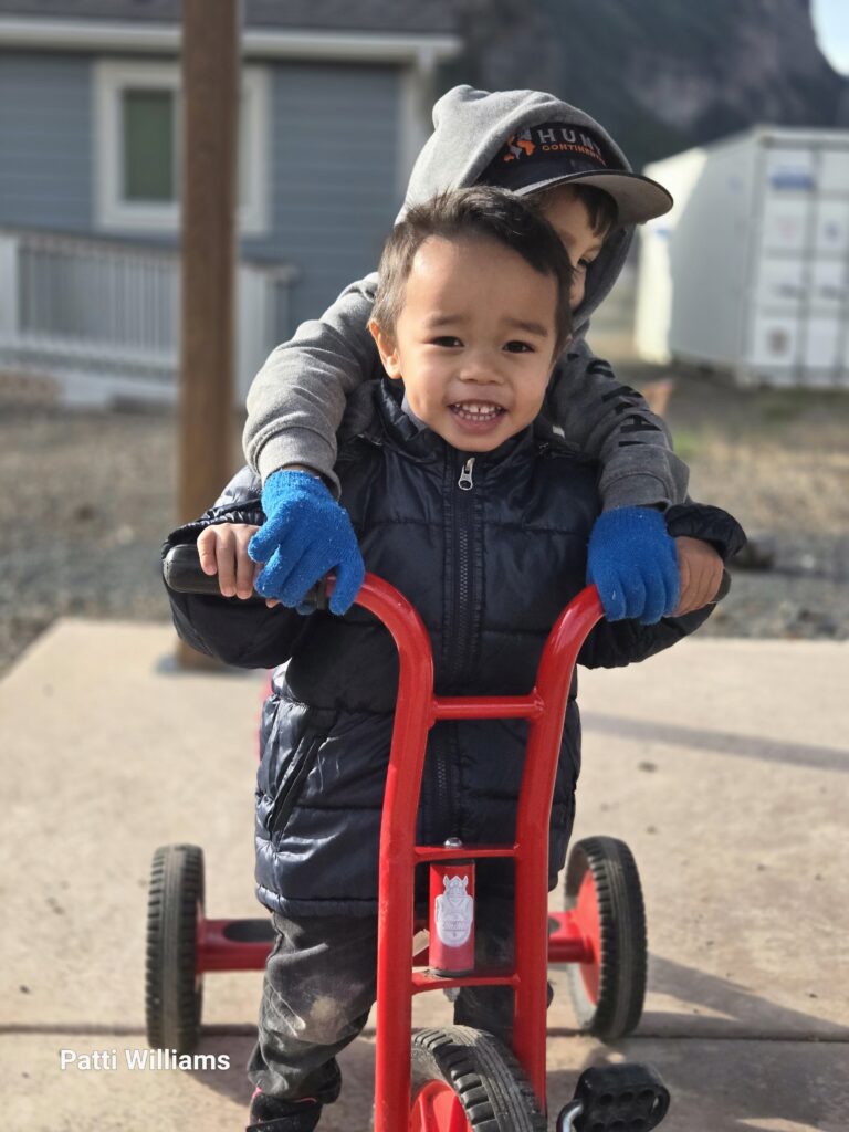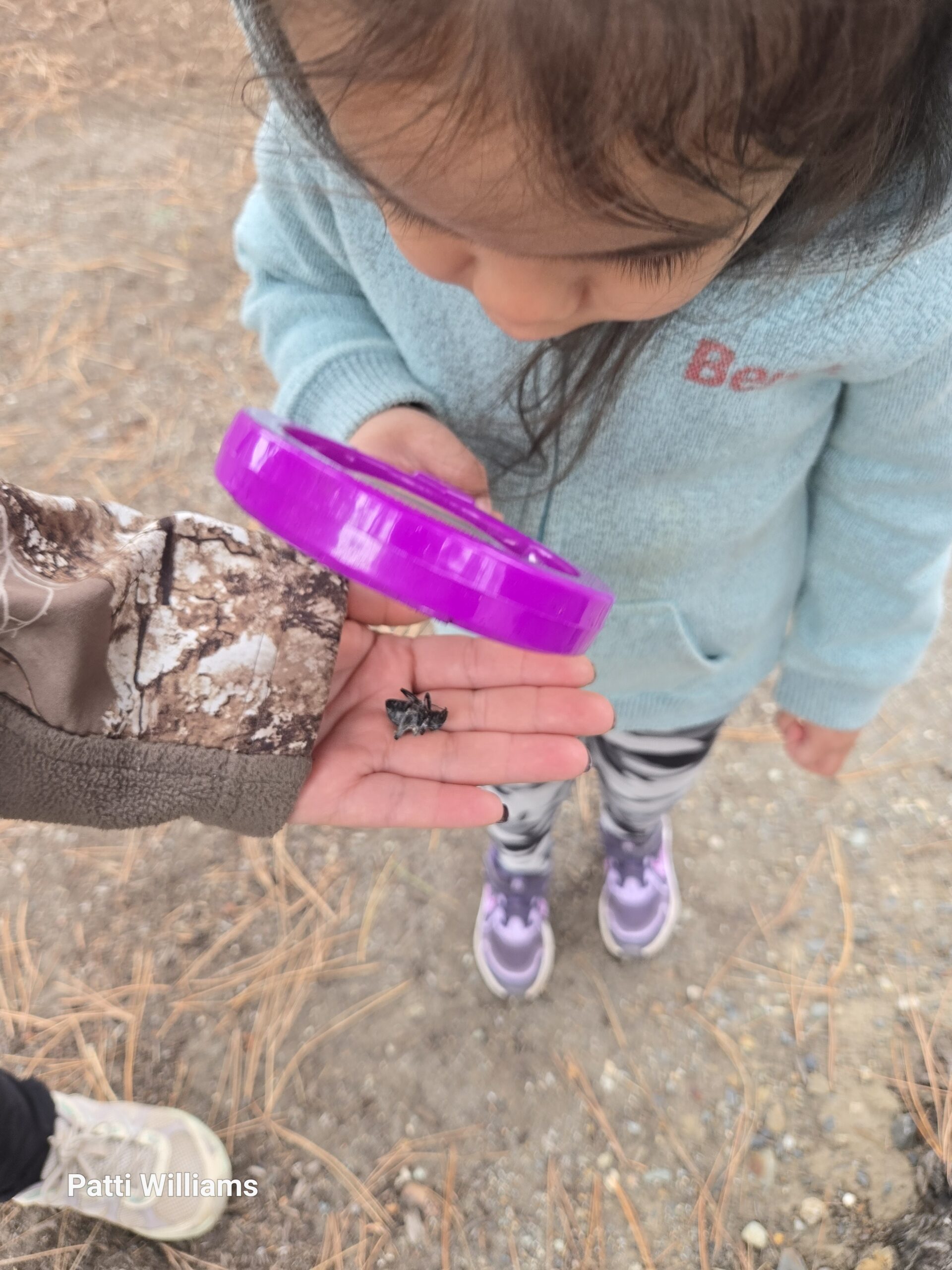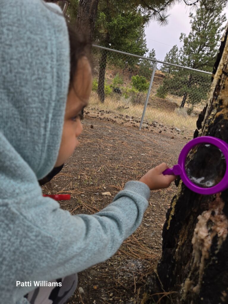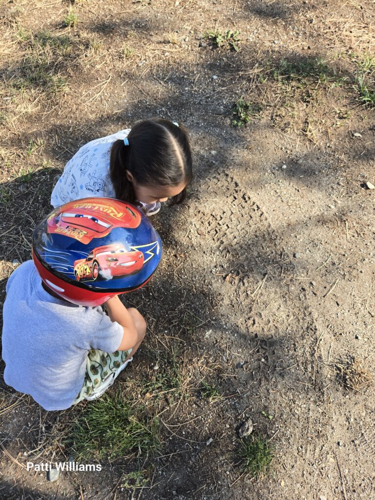 I have noticed that when in the center’s yard, they enjoy looking at the world around them through a magnifying glass. Leeland has a superb eye for noticing bugs. So neat to notice that there were learning moments happening all the time if we observe more and listen. Often, the red magnifying glass is the favourite among some children. It was neat to see that the children are capable of Sharing. However, there was a moment when Lennox got the red magnifying glass first. This resulted in Leeland being upset that he did not get it. After explaining, we can either put a timer on for 5 minutes the we can trade magnifying glasses, or we can find something else to do till he is done. Leeland took a minute to collect himself and decided to go play on the bikes instead. Since being at Lil’ Quills I have seen growth in the children’s peer connections and communication. Breathing techniques were essential for all of us. Yes I even caught myself breathing with the children through their high emotions.
