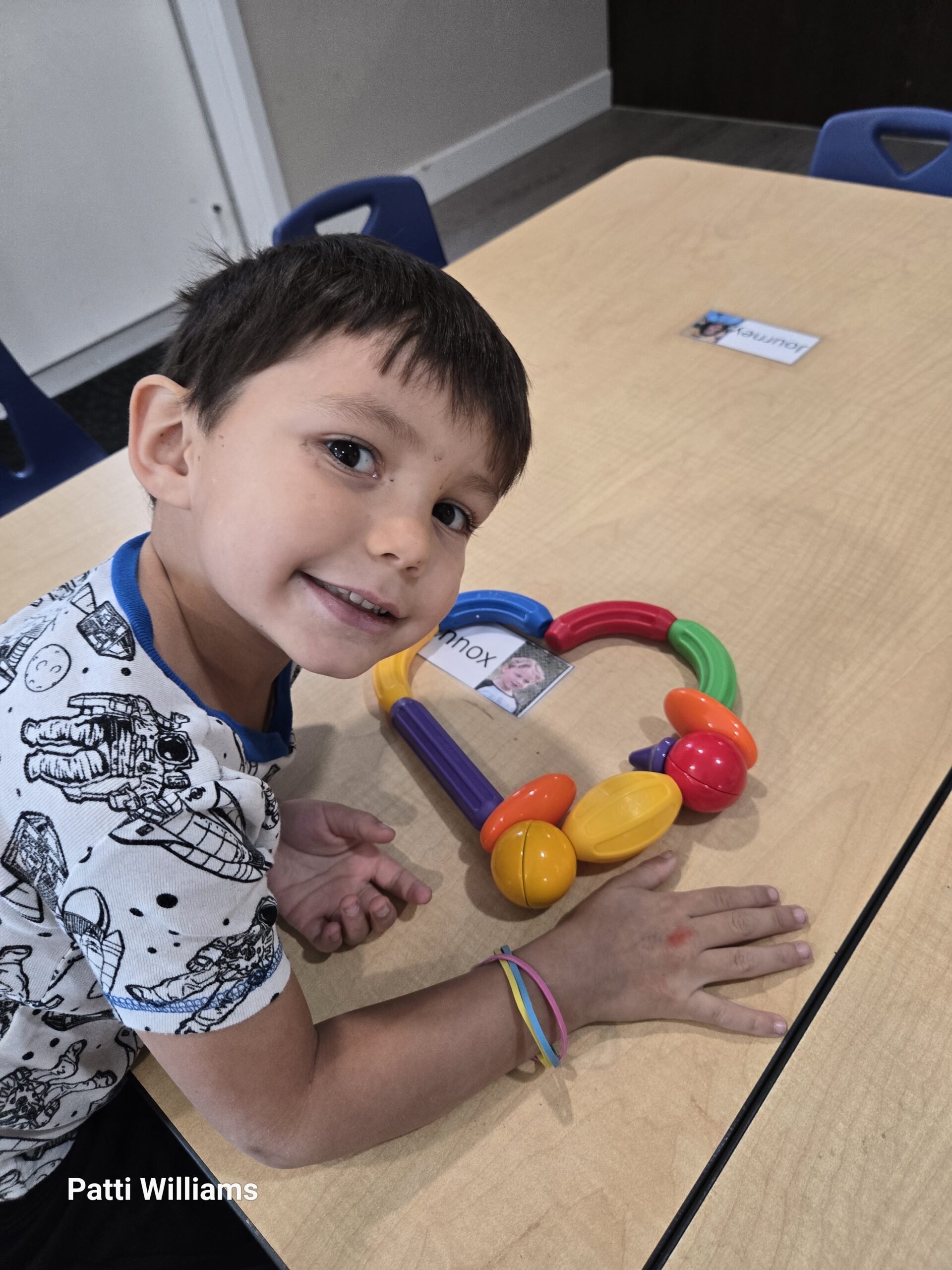 Leeland Vinnie is such a bright, outgoing young man. Leeland is very observant in and outside the center. His capability to see even the smallest organism on the tree, or a camouflaged grasshopper in tall grass, is amazing. Leland is excellent at communicating when he requires space or needs something. We have developed a connection through beading and crafting, in which he is very creative. Leland also has a love for music. Down by the bay, I would often hear him sporadically sing throughout the center. He also enjoyed waking up from nap time to the wake-up song. Felt board songs and felt board stories. He loves participating in singing and looking for objects on the felt board. Leeland is also great at making his own pizzas, which is done every 2nd Friday of the month.