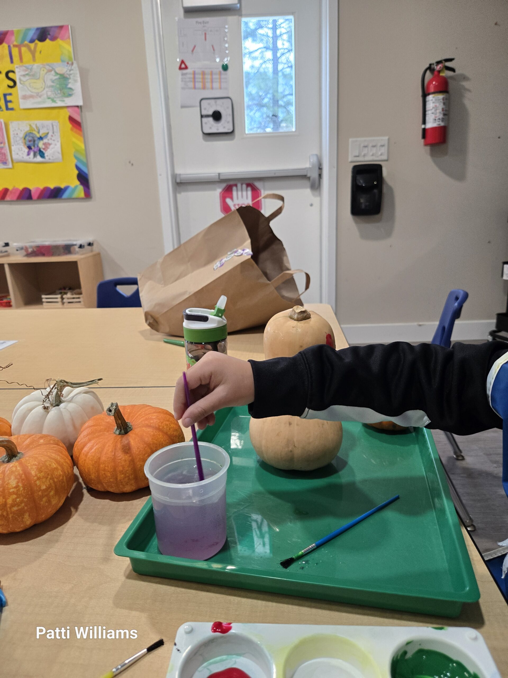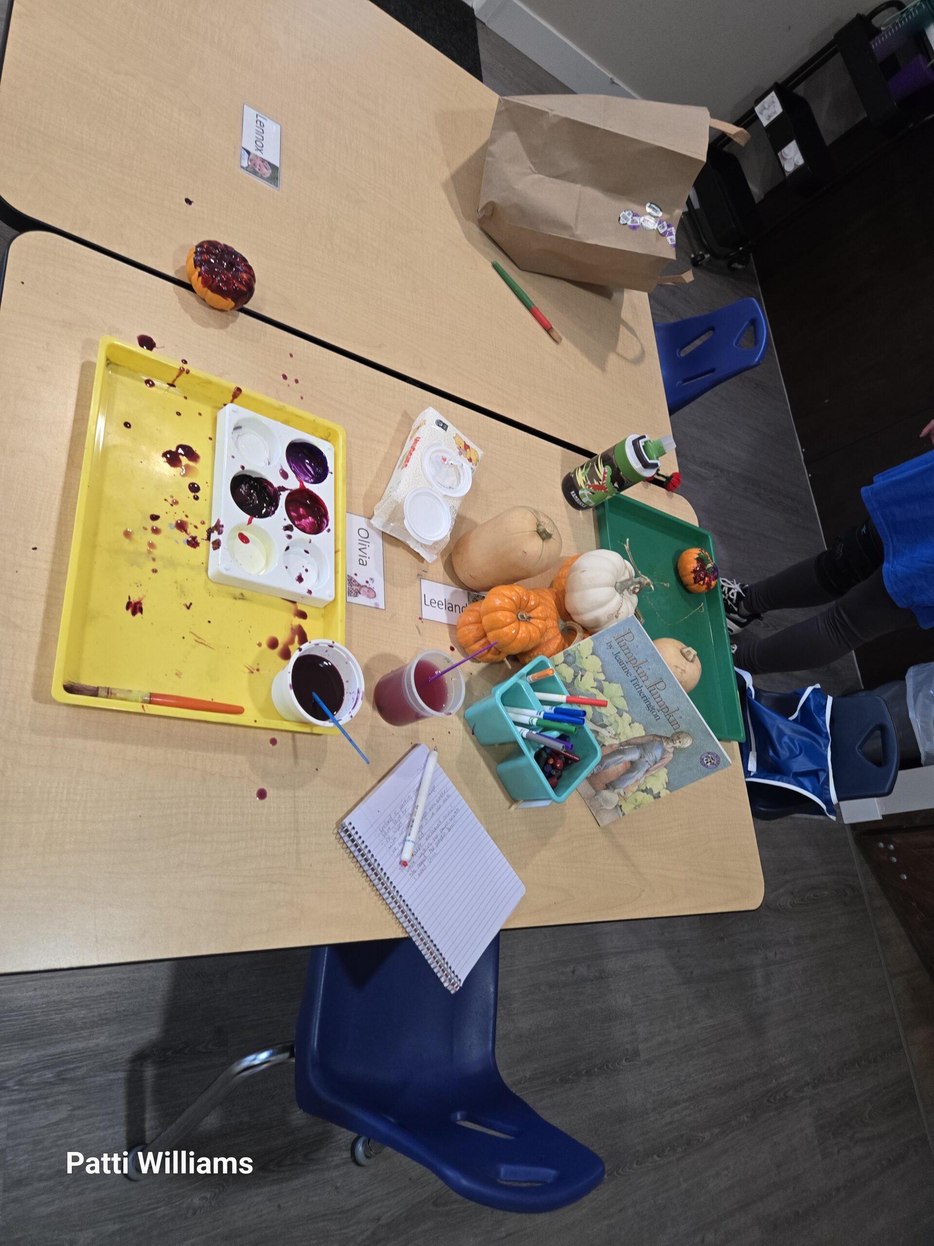Next time I would like to try asking the children to bring a tool from home to scoop out their pumpkin pulp. Maybe if the children bring something from home will give them more initiative. Maybe Olivia you bringing your favorite tool will have you in less fear of getting messy.